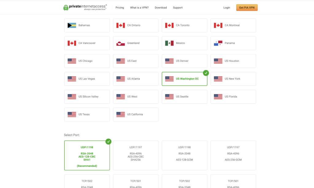 First, we need to select a server that works best. This likely will be mainly determined by your country and geographical area. With your account username and password for PIA, you will be able to see a complete list of servers here: https://www.privateinternetaccess.com/pages/ovpn-config-generator