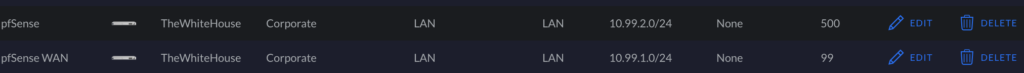 In our Unifi Settings page, we will create two Corporate LAN networks: one will be for the pfSense WAN, and the other will be for the pfSense LAN. As shown in the image below, the subnets correspond to the subnets we mentioned and configured for pfSense above.